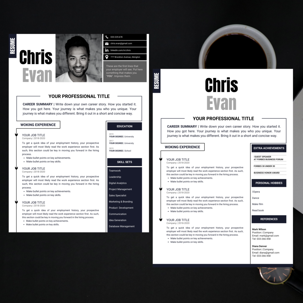 The only task this design wants to achieve is making your CV inviting to read, professionally but outstandingly. Well-organized and structure flow that makes room for your potential to shine.